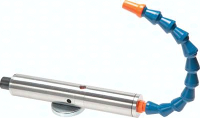 Funktion: Einströmende Druckluft wird durch das VORTEX-Rohr in einen Warmluft- und einen Kaltluftstrom aufgeteilt. Die warme Luft tritt auf der einen, die kalte Luft auf der anderen Seite des Rohres aus. Durch ein Regulierventil lässt sich die Temperaturdifferenz zwischen eintretender Druckluft und austretender Kaltluft einstellen. Bei sinkender Austrittstemperatur verringert sich gleichzeitig die austretende Kaltluftmenge. Es lassen sich Temperaturen von -40°C auf der Kaltluft- und bis zu +110°C auf der Heißluftseite erzeugen. Bei konstanter Lufteintrittstemperatur und Druck kann die Austrittstemperatur mit einer Toleranz von ± 0,6 K eingestellt werden. Werkstoffe: Gehäuse: Edelstahl AISI 303, VORTEX-Generator: Kunststoff Temperaturbereich: -20°C bis max. +120°C Arbeitsdruck: 1 - 8 bar, optimal: 5 bar (gefilterte, ungeölte Druckluft) Anwendungsbeispiele: genaue Temperaturregelung, genaue Anpassung des VORTEX-Rohres an jede Anforderung durch mitgelieferte leicht wechselbare VORTEX-Generatoren, Kühlung von Lötstellen, Heißkleber oder Klebstoffen, Kühlung beim Punktschweißen, vermeidet Verfärbungen und Verformungen, Kühlung von z. B. flüssiger Schokolade in der Lebensmittelverarbeitung, Kühlung von Kaltform- und Ultraschallwerkzeugen, Kühlung bei spanabhebender Bearbeitung ohne Kühlmittel (z. B. für Kunststoffe), Kühlung von Nadeln in Nähmaschinen, Kühlung von Schneidwerkzeugen, Thermo-Prüfung elektronischer Komponenten, Schrumpfpassungen Vorteile: geringe Anschaffungs- und Betriebskosten, wartungsfrei, keine beweglichen Bauteile - kein Verschleiß, für den Betrieb wird nur Druckluft benötigt, keine Elektrizität, keine Rückstände auf dem gekühltem Gut durch Kühlmittel oder Kältespray