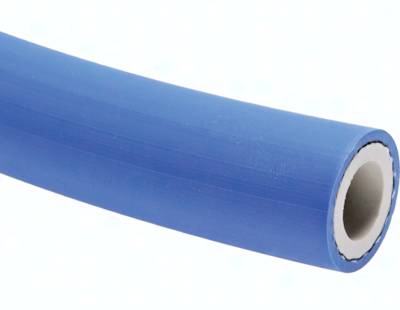 Werkstoffe: Seele: EPDM, weiß, glatt, lebensmittelecht, Druckträger: Textileinlagen gewickelt, Decke: EPDM, blau, fett-, abrieb-, witterungs- und ozonbeständig Temperaturbereich: -20°C bis max. +100°C, sterilisierbar mit Dampf (kurzzeitig bis +120°C) Betriebsdruck: 10 bar Einsatzbereich: Zum Durchleiten von Säften, Likören, Weinen und flüssigen Lebensmitteln. Beständig gegen pflanzliche Fette und Öle. Rollenlänge: 40 mtr. Zulassungen: BfR (ehem. BGVV) XXI, 2002 Kat. 2 und FDA (CFR 21)