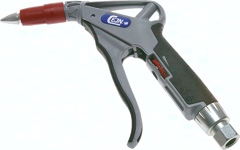 Werkstoffe: Körper: POM, TPE und Aluminium, Dichtungen: NBR Temperaturbereich: 20°C bis max. +80°C Betriebsdruck: max. 16 bar (>60°C max. 10 bar) Durchfluss: Luft: max. 1200 l/min (Wasser: max. 25 l/min) Vorteile: sehr hohe Blaskraft, einfache Durchflussregulierung, fein dosierbarer Strahl, für Luft und Wasser geeignet, warmes Griffgefühl durch Kunststoffkörper, Sicherheitsdüse nach OSHA-Standard *Standardkupplung