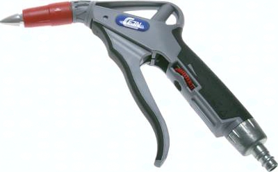 Werkstoffe: Körper: POM, TPE und Aluminium, Dichtungen: NBR Temperaturbereich: 20°C bis max. +80°C Betriebsdruck: max. 16 bar (>60°C max. 10 bar) Durchfluss: Luft: max. 1200 l/min (Wasser: max. 25 l/min) Vorteile: sehr hohe Blaskraft, einfache Durchflussregulierung, fein dosierbarer Strahl, für Luft und Wasser geeignet, warmes Griffgefühl durch Kunststoffkörper, Sicherheitsdüse nach OSHA-Standard *Standardkupplung