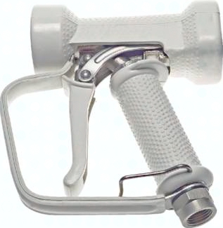 Werkstoffe: Edelstahl/Messing-Kombination gummiummantelt (Typ Edelstahl: Edelstahl komplett, gummiummantelt), Gummiummantelung: EPDM Temperaturbereich: max. +95°C Betriebsdruck: max. 24 bar Durchfluss: max. 80 l/min. Optional: isolierter Edelstahl-Sicherheitsbügel -S Vorteile: stufenlose Regulierung des Wasserstrahls von feinem Sprühnebel bis zum konzentrierten Strahl, optimaler Schutz gegen Hitze, Kälte und Stöße durch die dicke Gummiummantelung, Arretierungsklammer für Dauerbetrieb