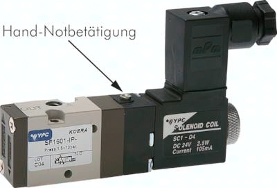 Werkstoffe: Körper und Schieber: Aluminium, Dichtungen: NBR, Pilot: Polyamid (glasfaserverstärkt) Temperaturbereich: -10°C bis max. +60°C Medien: geölte und ungeölte, gefilterte Druckluft Schaltzeit (bei 5 bar): < 25 ms Steuerspannung: Standard: 24 V=, 230 V AC (2-Pol-Stecker nur 24 V=) Spannungstoleranz: ± 10 % Leistungsaufnahme: Gleichstrom: 2,5 W, Wechselstrom: 3,5 VA Schutzart (VDE 0470/EN 60529): IP 65, (IP 50 mit 2-Pol-Stecker) Optional: Steuerspannungen 12 V= -D2, 24 V AC -A4, 115 V AC -A1 Information: Diese Ventile werden grundsätzlich mit Spule und Stecker ausgeliefert!