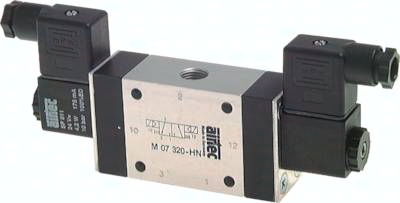 Werkstoffe: Körper: Aluminium eloxiert und Kunststoff, Innenteile: Stahl rostfrei und Messing, Dichtung: Kunststoff / NBR Temperaturbereich: -10°C bis max. +70°C Steuerspannung: Standard: 24 V=, 230 V AC, viele Sonderspannungen möglich Leistungsaufnahme: Gleichstrom: 4,2 W, Wechselstrom: 4,0 VA (Anzug: 7,0 VA) Schutzart: IP 65, Steckergröße 1 Druckeingang: Anschluss 1 Information: Diese Ventile werden grundsätzlich mit Spule und Stecker ausgeliefert! *verfügbar mit Atex-Zulassung EX II 2GD c T5 T100°C, T Medium/T amb: -10°C bis max. +50°C, nähere Angaben siehe Bedienungsanleitung, **EX II 2G EEx m IIC T5 / EX II 2D IP 65 T95°C wird mit 3 mtr. Kabel geliefert, ***EX II 2G EEx ia IIC T6 (max. 8 bar) Versorgung aus eigensicheren Stromkreisen U <= 28 V, I <= 115 mA, P <= 1,6 W