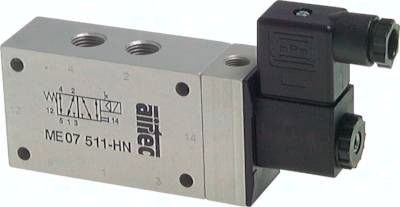 Werkstoffe: Körper: Aluminium eloxiert und Kunststoff, Innenteile: Stahl rostfrei und Messing, Dichtung: Kunststoff / NBR Temperaturbereich: -10°C bis max. +70°C Steuerspannungen: Standard: 24 V=, 230 V AC, viele Sonderspannungen möglich Leistungsaufnahme: Gleichstrom: 4,2 W, Wechselstrom: 4,0 VA (Anzug: 7,0 VA) Schutzart: IP 65, Steckergröße 1 Druckeingang: Anschluss 1 *verfügbar mit Atex-Zulassung EX II 2GD c T5 T100°C, T Medium/T amb: -10°C bis max. +50°C, nähere Angaben siehe Bedienungsanleitung, **EX II 2G EEx m IIC T5 / EX II 2D IP 65 T95°C wird mit 3 mtr. Kabel geliefert, ***EX II 2G EEx ia IIC T6 (max. 8 bar) Versorgung aus eigensicheren Stromkreisen U <= 28 V, I <= 115 mA, P <= 1,6 W Information: Diese Ventile werden grundsätzlich mit Spule und Stecker ausgeliefert!