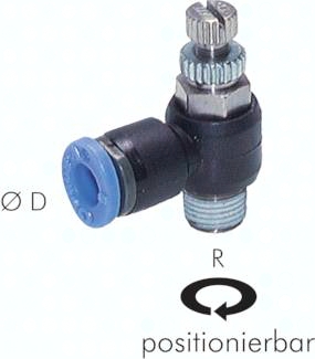 Werkstoffe: Körper: Messing vernickelt / PBT, Dichtung: NBR, Haltekralle: Edelstahl, Patrone: ZnDC vernickelt, Lösering: POM Betriebsdruck: -0,95 bis 10 bar Temperaturbereich: 0°C bis max. +60°C Funktionsprinzip: Drosselrückschlagventile drosseln den Durchfluss in einer Richtung, in der anderen Richtung ist der Durchfluss ungedrosselt. Standardform sind die Drosselrückschlagventile "abluftregelnd". Sind diese in z.B. einen Zylinder eingeschraubt, ermöglicht diese einen gleichmäßigen Lauf ohne Slip-Stick-Effekt. Bei Zylindern mit kleinem Volumen (kleiner Durchmesser/geringer Hub), werden Drosselrückschlagventile in der Sonderform "zuluftregelnd" eingesetzt. Medien: Druckluft, neutrale Gase Vorteile: kompakte Bauform, einfache Verstellung ohne Werkzeug möglich
