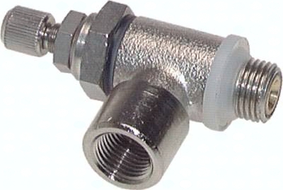 Typ B - Abluft regelbar Standard: Abluftregelnd - Zuluft frei (vom Gewinde zum Ringstück gedrosselt) Verwendungsempfehlung: Für Zylinder ab Ø 16 mm Vorteile: gute Einstellmöglichkeit ohne Springen, gleichmäßiger Lauf, Vor- und Rückhub verschiedene Geschwindigkeiten möglich Typ A - Zuluft regelbar Sonderausführung: Zuluftregelnd - Abluft frei (vom Ringstück zum Gewinde gedrosselt) Verwendungsempfehlung: Für kleine Ø und kurze Hübe (kleine Volumen) Vorteile: auch kleine Luftvolumen sind regelbar, Vor- und Rückhub verschiedene Geschwindigkeiten möglich Typ C - Zu- und Abluft regelbar Sonderausführung: Zu- und abluftregelnd Verwendungsempfehlung: Für kleine und einfachwirkende Zylinder Vorteile: Vor- und Rücklauf gleiche Geschwindigkeiten Nachteile: nur selten ohne "Springen" zu verwenden Werkstoffe: Hohlschraube: Messing vernickelt, Dichtung: NBR, Dicht- und Distanzring: Kunststoff Temperaturbereich: -20°C bis max. +80°C Druckbereich: 0,2 - 10 bar