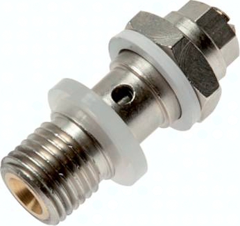 Typ B - Abluft regelbar Standard: Abluftregelnd - Zuluft frei (vom Gewinde zum Ringstück gedrosselt) Verwendungsempfehlung: Für Zylinder ab Ø 16 mm Vorteile: gute Einstellmöglichkeit ohne Springen, gleichmäßiger Lauf, Vor- und Rückhub verschiedene Geschwindigkeiten möglich Typ A - Zuluft regelbar Sonderausführung: Zuluftregelnd - Abluft frei (vom Ringstück zum Gewinde gedrosselt) Verwendungsempfehlung: Für kleine Ø und kurze Hübe (kleine Volumen) Vorteile: auch kleine Luftvolumen sind regelbar, Vor- und Rückhub verschiedene Geschwindigkeiten möglich Typ C - Zu- und Abluft regelbar Sonderausführung: Zu- und abluftregelnd Verwendungsempfehlung: Für kleine und einfachwirkende Zylinder Vorteile: Vor- und Rücklauf gleiche Geschwindigkeiten Nachteile: nur selten ohne "Springen" zu verwenden Werkstoffe: Körper: Messing vernickelt, Dichtung: NBR, Dicht- und Distanzring: Kunststoff Temperaturbereich: -20°C bis max. +80°C Druckbereich: 0,2 - 10 bar Lieferumfang: Hohlschraube mit integriertem Ventil inklusive Dichtring und Distanzring Vorteile: kompakte Bauform, unverlierbare Kennzeichnung auf Schlüsselfläche zeigt auch nach Jahren des Gebrauchs noch die Funktion der Hohlschraube an (B-abluftregelnd, A-zuluftregelnd, C-zu- und abluftregelnd)