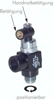 Temperaturbereich: -10°C bis max. +70°C Betriebsdruck: 1 - 10 bar Funktion: das Absperrventil verhindert ein Entlüften des Zylinders bei Druckabfall (z.B. Rohrleitungsbruch), der Zylinder kann nur gefahren werden, wenn entweder die Betätigung belüftet ist, oder die Handnotbetätigung betätigt wird, die Druckluft kann durch das Rückschlagventil immer ungehindert in die Zylinderkammer einströmen, muss jedoch zum Ausströmen separat angesteuert (entsperrt) werden, steht bei der Betätigung kein Signal an, so kann die Luft nur in einer Richtung fließen (Stoppfunktion - Rückschlagventil), steht bei der Betätigung ein Signal an, so ist Durchfluss in beiden Richtungen möglich *bei Betriebsdruck 1 - 10 bar, **zum Nachrüsten
