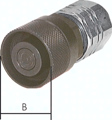 Werkstoffe: Stahl verzinkt, verschleißbeanspruchte Komponenten: hochfester Stahl induktiv gehärtet, Federn: Edelstahl 1.4310, Dichtung: NBR Temperaturbereich: -25°C bis max. +125°C Kuppelbar mit Restdruck im Stecker bis 250 bar (Muffe mit Restdruck bis 100 bar) Vorteile: kein Schmutz kann eindringen, da die Kupplung an der glatten Oberfläche "flaches Gesicht" einfach saubergewischt werden kann, axiale Kräfte können durch die Konstruktion dieser Kupplung gut aufgenommen werden. Besonders geeignet für Verwendung an Hydraulikschläuchen, unter Druck kuppelbar