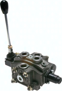 Verwendung: Diese Ventile finden Verwendung bei Mobil- und Industrieanwendungen. Durch das Baukastensystem können kompakte Steuerblöcke mit bis zu 9 Verbrauchern wie Hydraulikzylinder und Hydraulikmotoren zusammengestellt werden. Bei den Grundkomponenten ist die Nullstellung des Ventils immer als druckloser Umlauf von P nach T ausgeführt. Das Eingangselement besitzt ein Druckbegrenzungsventil mit einem Einstellbereich von 40 - 320 bar. Die Handhebelelemente haben standardmäßig eine Federrückstellung zur Mittelstellung. Durch die als Nachrüstsätze gekennzeichneten Komponenten lassen sich die Grundkomponenten einfach von Federrückstellung auf Rastung oder Sperren des drucklosen Umlaufes usw. umrüsten. Werkstoffe: Körper: Stahl und Kunstoff, Innenteile: Stahl, Dichtung: Kunststoff / NBR Temperaturbereich: -30°C bis max. +90°C Betriebsdruck: Eingangsdruck: 0 bis max. 320 bar, Rücklaufdruck max. 35 bar (Eingangselement mit Druckbegrenzungsventil einstellbar 40 - 320 bar) Medien: Hydrauliköle auf Mineralölbasis (Viskositätsbereich: 10 - 300 mm²/s) Maße: 1 Handhebelelement: x 130 mm, y 83 mm, max. Durchfluss 50 l/min - 2 Handhebelelemente: x 168 mm, y 121 mm, max. Durchfluss 50 l/min - 3 Handhebelelemente: x 206 mm, y 159 mm, max. Durchfluss 45 l/min - 4 Handhebelelemente: x 244 mm, y 197 mm, max. Durchfluss 45 l/min - 5 Handhebelelemente: x 282 mm, y 235 mm, max. Durchfluss 45 l/min - 6 Handhebelelemente: x 320 mm, y 273 mm, max. Durchfluss 40 l/min, 7 Handhebelelemente: x 358 mm, y 311 mm, max. Durchfluss 40 l/min - 8 Handhebelelemente: x 396 mm, y 349 mm, max. Durchfluss 35 l/min - 9 Handhebelelemente: x 434 mm, y 387 mm, max. Durchfluss 35 l/min