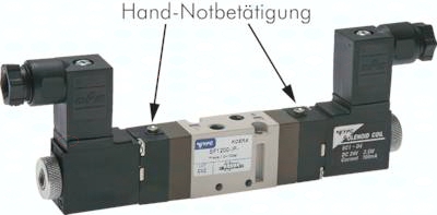 Werkstoffe: Körper und Schieber: Aluminium, Dichtungen: NBR, Pilot: Polyamid (glasfaserverstärkt) Temperaturbereich: -10°C bis max. +60°C Medien: geölte und ungeölte, gefilterte Druckluft Schaltzeit (bei 5 bar): < 25 ms Steuerspannung: Standard: 24 V=, 230 V AC (2-Pol-Stecker nur 24 V=) Spannungstoleranz: ± 10 % Leistungsaufnahme: Gleichstrom: 2,5 W, Wechselstrom: 3,5 VA Schutzart (VDE 0470/EN 60529): IP 65, (IP 50 mit 2-Pol-Stecker) Optional: Steuerspannungen 12 V= -D2, 24 V AC -A4, 115 V AC -A1 Information: Diese Ventile werden grundsätzlich mit Spule und Stecker ausgeliefert!