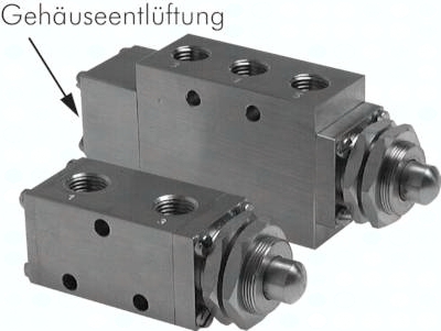Werkstoffe: Körper und Schieber: 1.4436, Dichtung: Viton, Schaltnocke / Rolle: 1.4436 (Typ ER 05 ... ES: POM) Temperaturbereich: -20°C bis max. +180°C (Typ ER 05 ... ES: bis max. +75°C) Betriebsdruck: -0,95 bis 12 bar Medien: geölte und ungeölte Druckluft und ungiftige Gase (50 µm) Schalttafeleinbau (nur Typen E ... ES und ERT ... ES): Im Lieferumfang sind zwei Muttern für den Schalttafeleinbau enthalten (Lochdurchmesser: 24 mm, max. Blechdicke: 5 mm) *Gehäuseentlüftung: G 1/8"