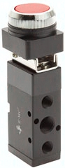 Werkstoffe: Körper und Schieber: Aluminium, Dichtungen: NBR Temperaturbereich: -5°C bis max. +60°C Betriebsdruck: 0 - 8 bar Durchfluss: 800 l/min Medien: geölte und ungeölte, gefilterte Druckluft Schalttafelbohrung: 30,5 mm