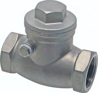 Werkstoffe: Gehäuse: 1.4408, Bolzen: 1.4301 Temperaturbereich: -20°C bis max. +200°C Optional: Zeugnis 3.1 Achtung: Nur für flüssige Medien geeignet. Klappe schließt durch Schwerkraft, daher nur horizontaler Einbau möglich!