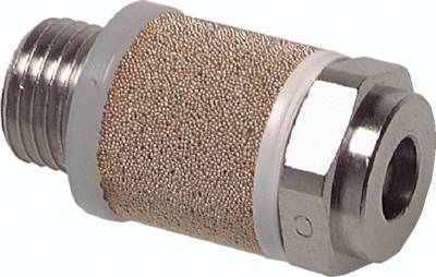 Bauart: Präzise Drosselspindel, wie sie bei den Winkel-Drosselventilen verwendet wird, dient als Grundkörper und ermöglicht dadurch eine sehr gute Durchflusseinstellung. Die große Schalldämpferfläche aus Sintermetall reduziert das Abluftgeräusch auf ein Minimum. Werkstoffe: Typ MS vernickelt: Hohlschraubendrossel: Messing vernickelt, Dichtungen und O-Ringe: NBR, Schalldämpfer: Sintermetall Bronze, Typ 1.4571: Hohlschraubendrossel: 1.4571, Dichtungen und O-Ringe: Viton, Schalldämpfer: Sintermetall 1.4436 Betriebsdruck: max. 10 bar Vorteile: kleines Einbaumaß, präzise Drosselung, geringer Geräuschpegel