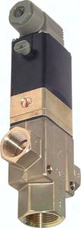 Werkstoffe: Körper: Messing, Innenteile: Messing / Edelstahl, Dichtung: NBR (Typen mit G 1/8" und G 1/4": Viton) Temperaturbereich: 0°C bis max. +90°C (G 1/8" und G 1/4": -10°C bis max. +130°C) Medien: Druckluft, neutrale Gase, Wasser, neutrale dünnflüssige Medien, Heizöl, andere Medien auf Anfrage Spannungen: Standard: 24 V=, 230 V AC, auf Wunsch: 12 V=, 48 V=, 24 V AC, 115 V AC, 48 V AC Schutzart: IP 65 Information: Diese Ventile werden grundsätzlich mit Spule und Stecker ausgeliefert! *Wasserdurchfluss bei +20°C, 1 bar Druck am Ventileingang, freier Auslauf. Durchfluss für Luft [l/min] ca. 13,4 x kv x PEingang, wenn PAusgang < Peingang/2 (PEingang und PAusgang sind Absolutwerte in bar.), **Achtung: Druckeingang an Anschluss 2, Entlüftung über Anschluss 3