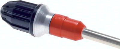 Düse zum Aufstecken auf CEJN-Ausblaspistolen mit Verlängerungsrohr. Durch Umleiten der Luft in der Düse wird der Geräuschpegel deutlich gesenkt.