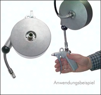 Lieferumfang: Schlauchzug, 400 mm Versorgungsschlauch mit beidseits 1/4" drehbaren Außengewinde und Knickschutz, 250 mm Drahtseil und Drahtklemme zur Befestigung.