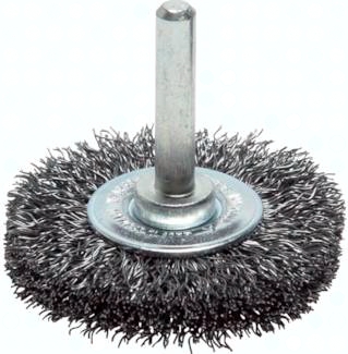 Anwendung: Zum Einspannen in Handschleifer oder biegsamen Wellen, zum Entfernen von Rost, Farbe, o.ä., Reinigung von Schweißnähten, leichte Entgratarbeiten, Bürsten mit Edelstahldraht zum Entfernen von Anlassfarbe bei Edelstahlschweißnähten.