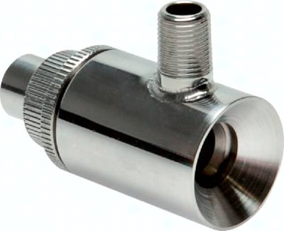 Funktion: Durch einen dünnen einstellbaren Ringspalt entweicht Luft mit nahezu Schallgeschwindigkeit. Dabei wird Umgebungsluft von der Rückseite des Verstärkers mitgerissen, sodass an der Vorderseite ein verstärkter Luftstrahl austritt. Die Luftverstärker können entweder in einem Rohrsystem eingebaut oder als offenes System eingesetzt werden und funktionieren wie ein Vakuumsystem, Ventilator oder Gebläse zum Abblasen oder Absaugen von Staub, Abgasen, Granulaten oder faserigen Materialien. Beim Einbau in einem Rohrsystem haben die Luftverstärker mit Werkseinstellung einen Verstärkungsfaktor von 12 bis 25 : 1 (als offenes System: 36 bis 75 : 1, Hochdruckdüse 4 : 1). Verwendung: Variable Luftverstärker werden dort eingesetzt, wo mit einem minimalen Druckluftverbrauch große Luftmengen bei niedrigem Druck benötigt werden. Sie können durch die leicht verstellbare Düse auf alle Anwendungsfälle angepasst werden. Temperaturbereich: -20°C bis max. +120°C Arbeitsdruck: optimiert für 5 bar Eingangsdruck (gefilterte, ungeölte Druckluft) Anwendungsbeispiele: Transport von allen Materialien, die durch rasches Bewegen von Luft transportiert werden können, z.B. Späne, Sägemehl, Rauch, Papier, Stoffstreifen, Granulat, Staub, Kapseln, Puder, etc., Belüften und Absaugen von Rauch und Dämpfen ohne Ventilator (Ex-Schutz), Entfernen von Spänen, Besäumresten, Wasser, Staub, etc., Kühlung von Gussteilen und Gussformen, Reinigung und Kühlung von Extrusionsteilen, die durch den Luftverstärker hindurch bewegt wird Vorteile: geringer Luftverbrauch - energiesparend, erhebliche Lärmreduzierung, leicht zu steuernder Durchfluss und Druck, sofortiges Ein / Aus-Verhalten, kein elektrischer Strom, keine Explosionsgefahr, wartungsfrei, keine beweglichen Bauteile - kein Verschleiß, niedriger Geräuschpegel *Messing