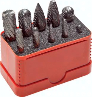 Beschreibung: Hochwertige Hartmetall-Frässtifte mit Kreuzverzahnung (KVZ 4) zum Entgraten, Konturenbearbeitung, Schweißnahtbearbeitung, Oberflächenbearbeitung, Verputzen von hochlegierten, rost-, säure- und hitzebeständigen Stählen, Guss und Kunststoffen Verwendung: in Schleifern mit 6,0 mm (3,0 mm) Spannschaft, Schnittgeschwindigkeit 300 m/min (Drehzahlen entsprechend 6000 - 25000 U/min)