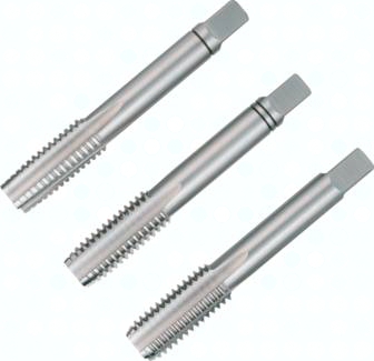 Beschreibung: 3-teiliger Handgewindebohrersatz (Feingewinde 2-teilig), bestehend aus Vorschneider, Mittelschneider und Fertigschneider für metrische Gewinde nach DIN ISO 13. Flanken hinterschliffen, Toleranz nach ISO 2 / 6H, Anschnitt: 2-3 Gang. Qualität: HSS HSS - Verwendung für Stahl, Stahlguss legiert und unlegiert (<800 N/mm² Zugfestigkeit), Grau-, Temper-, Sphäro- und Druckguss, Sintereisen, Neusilber, Graphit, kurzspanende Aluminiumlegierungen, Messing und Bronze. *in stabiler Industriekassette