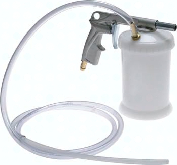 Arbeitsdruck: 6 bis 8 bar Anwendung: Durch Betätigen des Absauggerätes entsteht in dem Behälter ein Vakuum, welches nicht brennbare, ungiftige Flüssigkeiten durch den mitgelieferten Absaugschlauch in den Behälter saugt. Es wird empfohlen, den Flüssigkeitsbehälter schon bei einem mittleren Füllgrad zu entleeren, um ein Austreten der Flüssigkeit mit dem vakuumerzeugenden Luftstrahl zu vermeiden. Empfehlung: Das Gerät ist ideal für einen einfachen Ölwechsel an Getrieben, Motoren und Kompressoren. Das Öl kann einfach durch den Öleinfüllstutzen abgesaugt werden. Nicht mit Verdünnung, Benzin oder anderen brennbaren Flüssigkeiten verwenden! *Standardkupplung