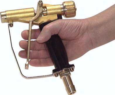 Werkstoffe: Körper: Aluminium, Hebel: Messing, Griffschalen: Polyamid, Schutzbügel: Stahl verzinkt Temperaturbereich: max. +90°C Betriebsdruck: max. 40 bar Durchfluss: Düsen Ø 2 mm (Standard): bei 6 bar - 5 l/min., bei 16 bar - 8 l/min., bei 40 bar - 13 l/min.; Düsen Ø 4 mm (optional): bei 6 bar - 20 l/min., bei 16 bar - 32 l/min., bei 40 bar - 50 l/min. Vorteile: stufenlose Regulierung des Wasserstrahls von feinem Sprühnebel bis zum konzentrierten Strahl, Betriebsdruck bis 40 bar, Betätigungshebel durch Schutzbügel gesichert Optional: Düse 4 mm Ø -4