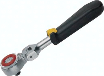 Ausführung: Knarren nach DIN 3122, ISO 3315 für Steckschlüsseleinsätze und Verbindungsteile mit Innenvierkantantrieb nach DIN 3120-C6.3, ISO 1174 mit Kugelarretierung, Vanadium-Stahl, verchromt
