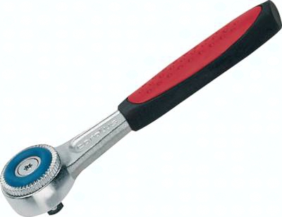 Ausführung: Knarren nach DIN 3122, ISO 3315 für Steckschlüsseleinsätze und Verbindungsteile mit Innenvierkantantrieb nach DIN 3120-C6.3, ISO 1174 mit Kugelarretierung, Vanadium-Stahl, verchromt