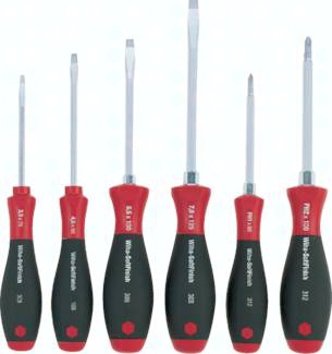 SDREH SPH SET6i, SDREH SPZ SET 6i, SDREH TX SET6i: Wiha-Schraubendreher -SoftFinish- mit ergonomischen (rundem) Mehrkomponentengriff mit Wegrollschutz, handschonende Geometrie für höchste Drehmomente, ChromTop®-Spitze garantiert höchste Maßhaltigkeit. Sechskantklinge mit Schlüsselhilfe, Kennzeichnung des Griffs mit Profilgöße. SDREHE SPH SET6i: Wiha-VDE-Schraubendreher -SoftFinish- mit ergonomischem (rundem) Mehrkomponentengriff mit Wegrollschutz, Kennzeichnung des Griffs mit Profilgröße. Zusätzlich Isolierung einzelstückgeprüft gem. DIN EN 60900 (IEC 60900 : 2004) für garantiert sicheres Arbeiten unter Spannung bis 1000 Volt. SDREH SPH SET6, SDREH SPZ SET6, SDREH TX SET6: Wera-Kraftform-Plus-Schraubendreher: Noch bessere Arbeitsergebnisse durch ergonomischen Mehrkomponentengriff mit Wegrollschutz, spezialgehärtete Klinge, Sechskantklinge und Schlüsselhilfe, Kennzeichnung des Griffs mit Schraubensymbol und Profilgröße SDREHE SPH SET7, SDREHE SPZ SET7: Wera-VDE-Kraftform-Plus-Schraubendreher: Noch bessere Arbeitsergebnisse durch ergonomische Mehrkomponentengriff mit Wegrollschutz, spezialgehärtete Klinge, Kennzeichnung des Griffs mit Schraubensymbol und Profilgröße. Zusätzlich Isolierung einzelstückgeprüft gem. DIN EN 60900 (IEC 60900 : 2004) für garantiert sicheres Arbeiten unter Spannung bis 1000 Volt. SDREHM SPH SET6, SDREHM SPZ SET6: Wera-Schraubmeißel: Noch bessere Arbeitsergebnisse durch ergonomischen Mehrkomponentengriff mit Wegrollschutz. Zusätzlich mit durchgehender, extra zäher Sechskantklinge mit Schlüsselhilfe und im Griff integrierter Schlagkappe *ohne Schlüsselhilfe, **ohne Lastertip, ***Rundklinge, ohne Schlüsselhilfe, ****ohne Schlüsselhilfe und Schlagkappe
