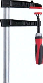 Beschreibung: Temperguss-Schraubzwingen finden Verwendung, wenn starr und unelastisch gespannt werden muss. Bei dynamischen Belastungen (Vibrationen) der Schraubzwinge ist eine Ganzstahlschraubzwinge vorzuziehen. Die Schraubzwingen sind ab 80 mm Ausladung mit einer patentierten Rutschsicherung versehen, die auch bei verschmutzter Schiene einen sicheren Halt gewährleistet. Der Handgriff ist aus einem hochwertigen, griffsympathischen 2-K Kunststoff gefertigt.
