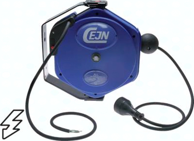 Funktion: Das Kabel kann ausgezogen und bei jeder Umdrehung der Trommel mehrfach arretiert werden. Nach kurzem Anziehen rollt die Trommel das gesamte Kabel wieder auf. Werkstoffe: Körper und Trommel: Kunststoff, Befestigungsbügel: Stahl schwarz lackiert Spannung: max. 230 V Lieferumfang: automatische Kabelaufroller mit Kabel 3 x 1,5 mm² und Schuko-Stecker und Schuko-Kupplung, Typ KAC mit freiem Kabelende am Zugang *nicht Fabrikat CEJN