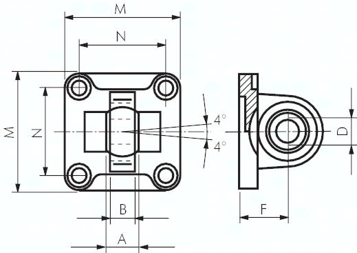 Lieferumfang: 1 Stk. Schwenkbefestigung, inkl. 4 Befestigungsschrauben Achtung: Nur Bolzen Typ FFQ für die Verbindung zu Typ TQ verwenden!